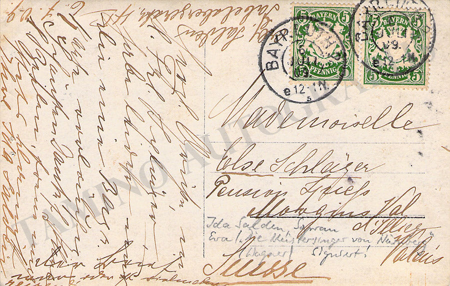 German soprano (1878-?).  Signed postcard photograph, shown as Eva in Wagner's Die Meistersinger, signed on front, extensively inscribed with additional signature on verso. Size is 3.5 x 5.5 inches, small crease on top left, otherwise in very good condition.