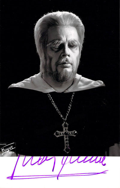 Signed photograph, shown as King Marke in Wagner's Tristan und Isolde, inscribed. Photo by James Heffernan, Metropolitan Opera, New York. Size is 5 x 7 inches, crease running along the right side, otherwise in very good condition.