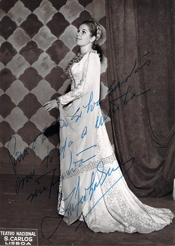Portuguese soprano, signed photo, shown as Juliette in Gounod's Romeo et Juliette, in Lisbon, inscribed. Stamped on verso by photographer Luis Mendes, Lisbon. Size is 4 x 5.75 inches, in excellent condition.
