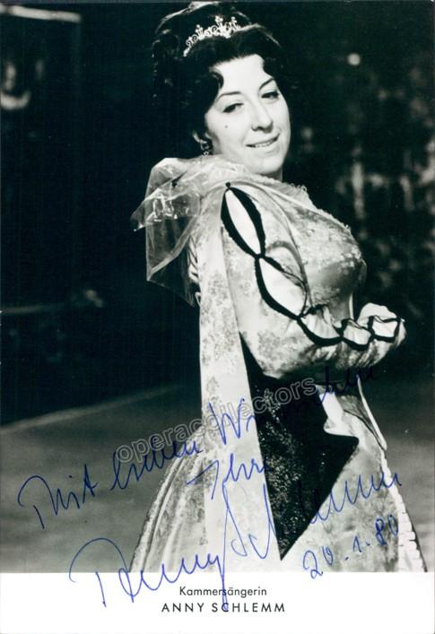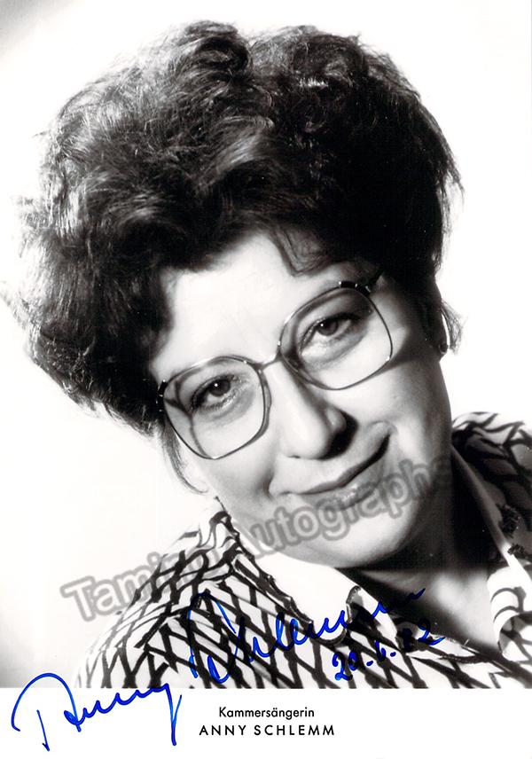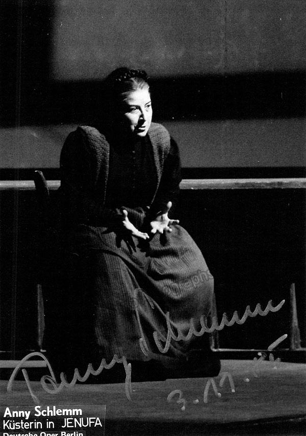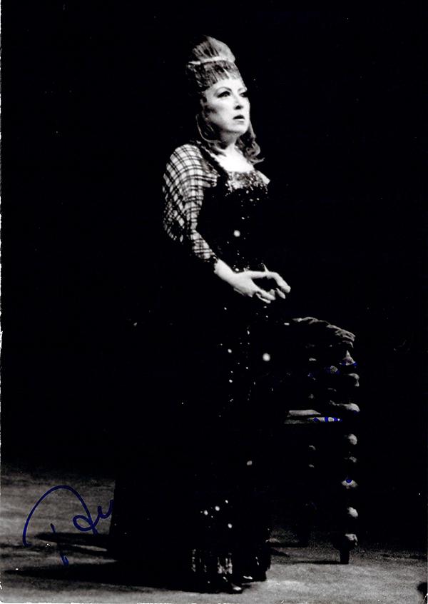 Signed photo, shown as Kostelnicka in Janacek's Jenufa, dated in 1985. Stamped on verso by photographer Kranich, Berlin. Size is 4 x 5.75 inches, in excellent condition.