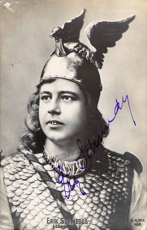 Signed postcard photograph, shown in the title role of Wagner's Lohengrin, Blind stamped on front by photographer C. Pietzner, Vienna, as well as by Magasin Metropole photo studio, Vienna. Size is 3.5 x 5.5 inches, in excellent condition.