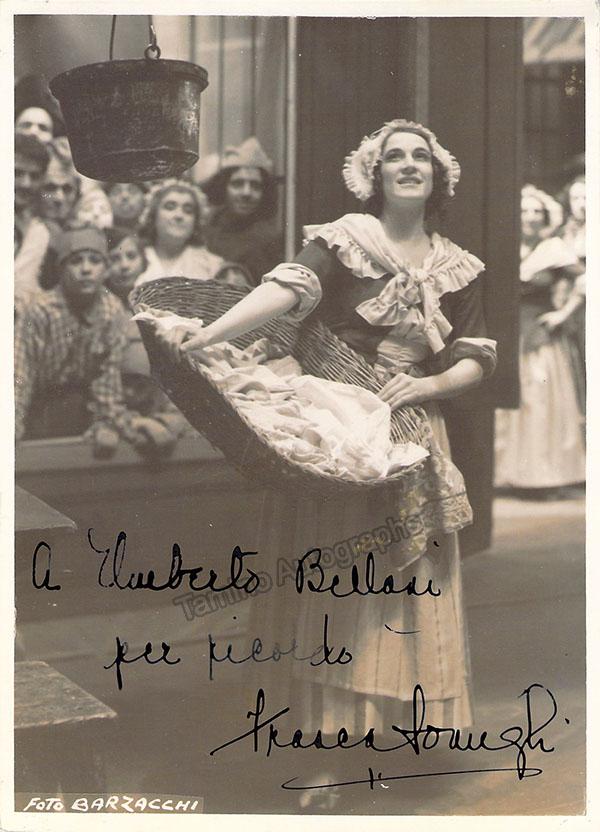 Signed photo, shown in role, inscribed. Photo by Barzacchi. Size is 4.75 x 6.5 inches, in excellent condition.