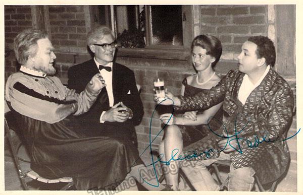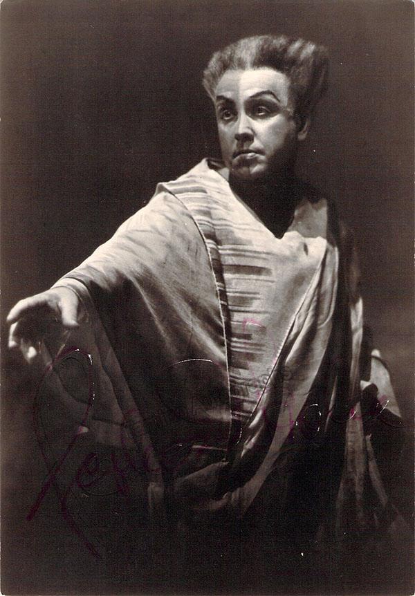 Signed photo, shown as Loge in Wagner's Das Rheingold at the 1964 Bayreuth Festival. Photo by Rudolf Betz, Bayreuth. Size is 4 x 5.75 inches, in excellent condition.
