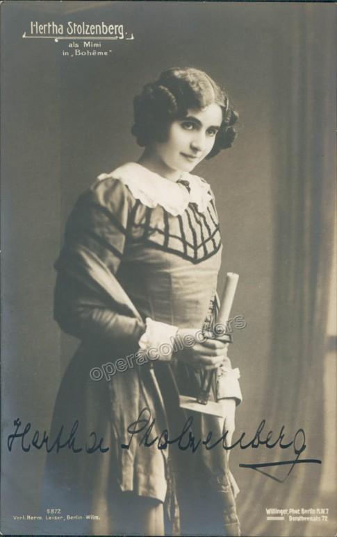 Signed photo postcard, shown as Violetta in Verdi's La Traviata. Photo by Hermann Leiser, Berlin. Size is 3.25 x 5.25 inches, in excellent condition