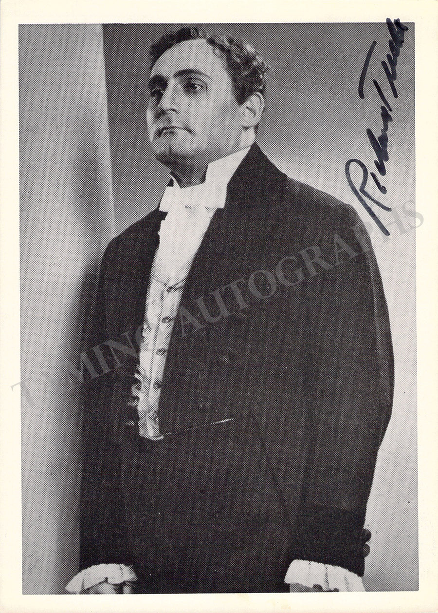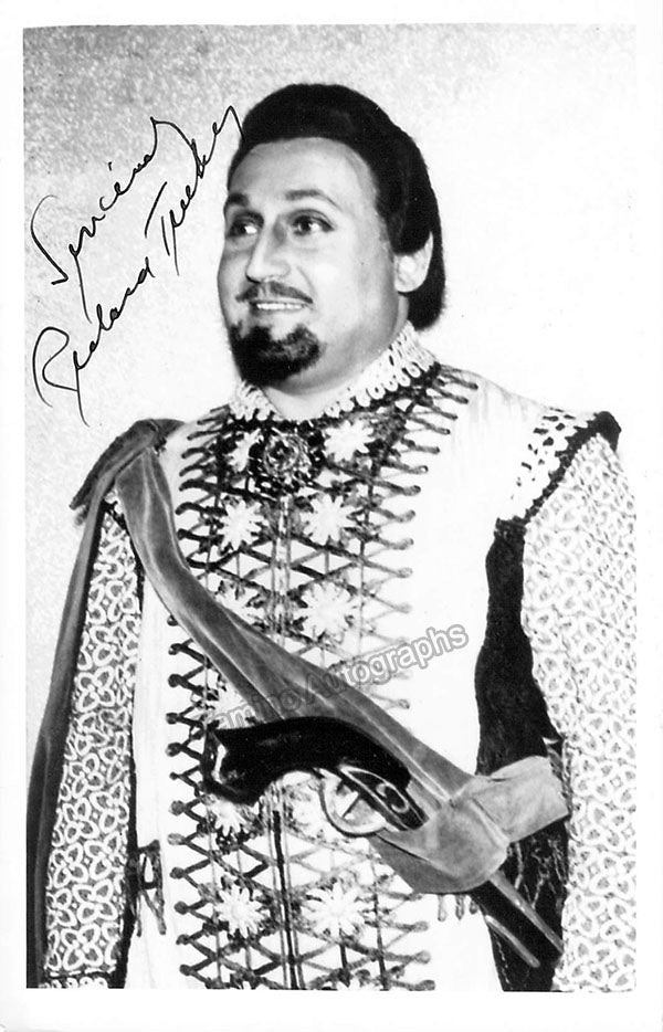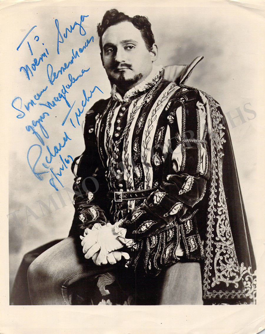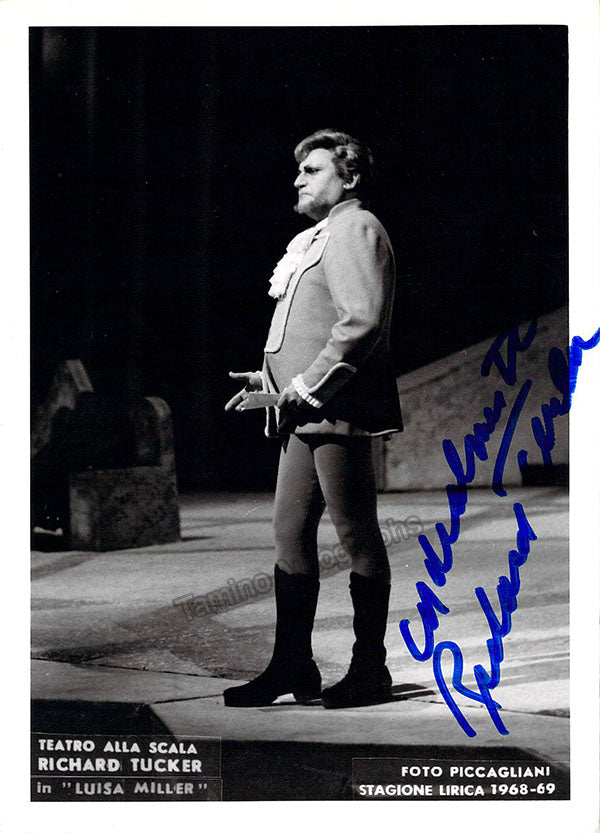 Fine black-and-white photograph signed and inscribed by him with a short sentiment in 1967, shown as the Duke in Verdi's opera Rigoletto. Size is 8 x 10.1 inches, minor crease, otherwise in very good condition.