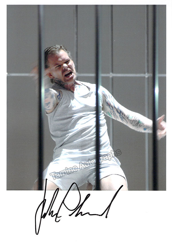 American baritone (later tenor), signed photograph, shown as Joseph De Rocher, the title character of Jake Heggie's opera Dead Man Walking, a role he premiered in the opera's world premiere performances in San Francisco in 2000. Size is 5 x 7 inches, in excellent condition.