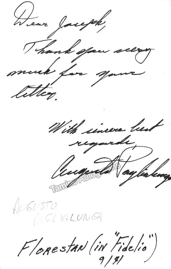 Opera tenor, signed photo, shown as Florestan in Fidelio. Inscribed and dated on verso in 1971. Size is 3.5 x 5.5 inches, in excellent condition.