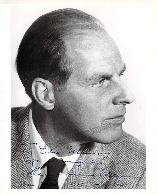 Signed photograph, shown in role (possibly Berg's Wozzeck), inscribed with sentiment, dated in 1964. Size is 8 x 10 inches, in excellent condition.