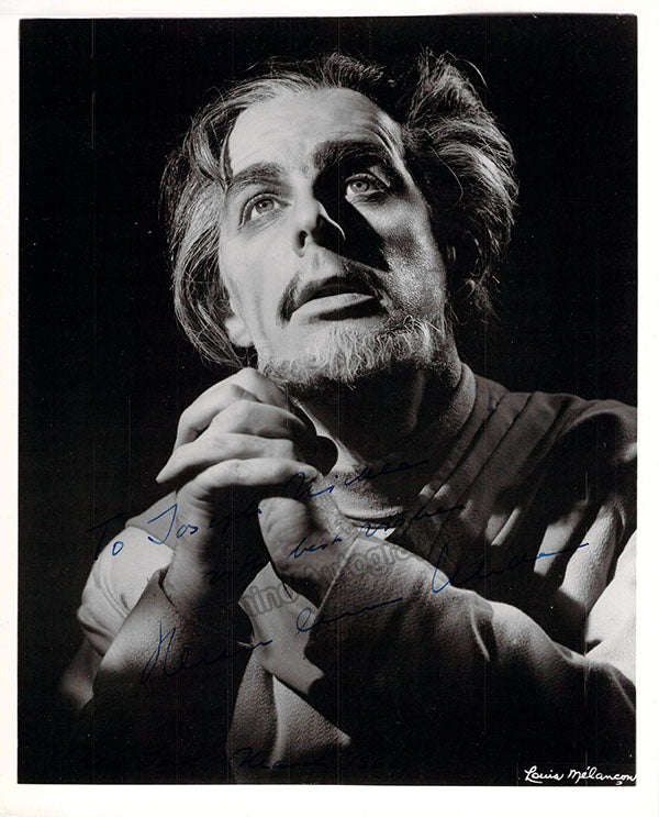 Signed photograph, shown in role, inscribed, dated in 1961. Photo by Louis Melancon, Metropolitan Opera, New York. Size is 8 x 10 inches, in excellent condition.