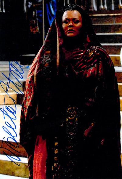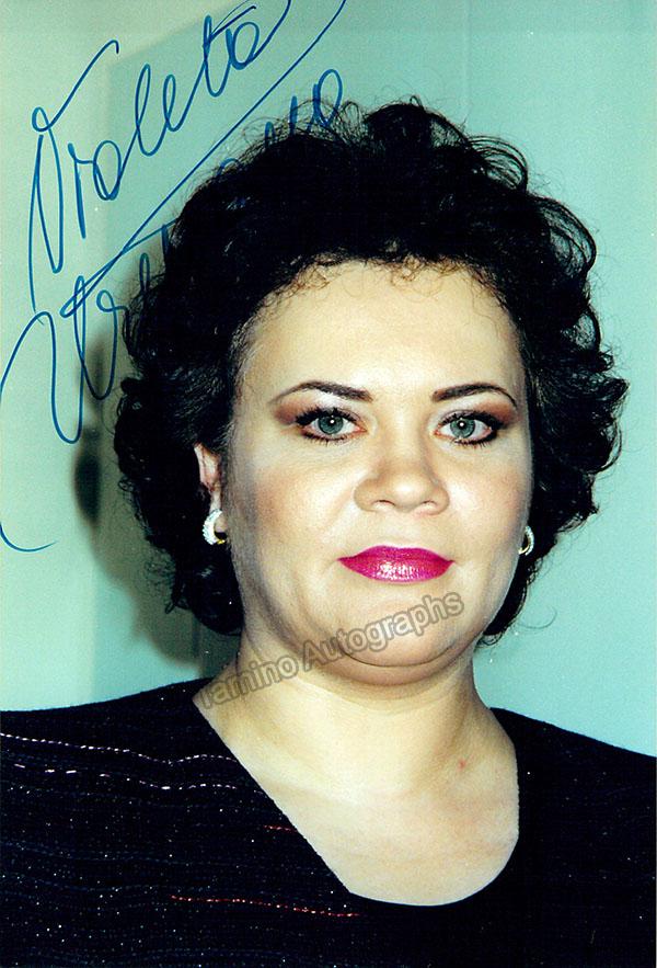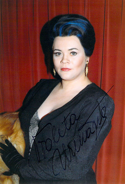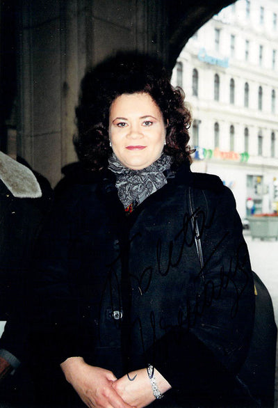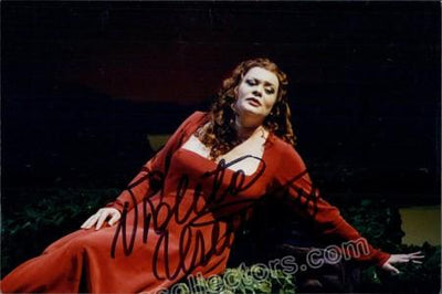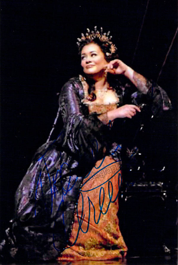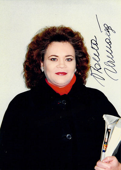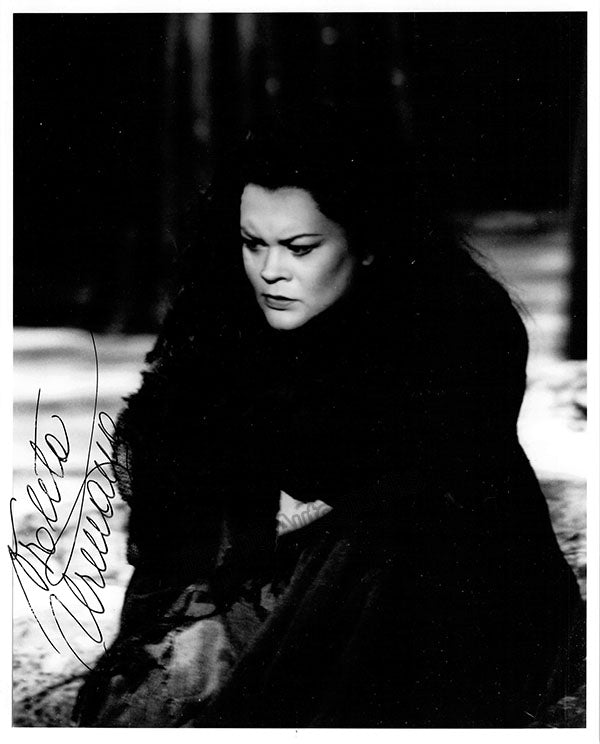 Nice color photograph signed by her in 2003, shown as Maddalena in Giordano's opera Andrea Chénier; sticker on verso by photographer Terry (Vienna). Size is 5 x 7.3 inches, in excellent condition.