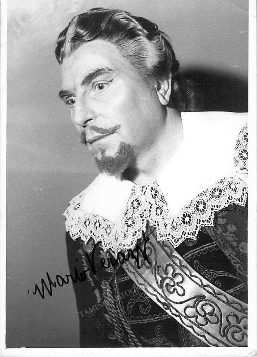 Italian bass, signed photograph, shown in Bellini's I Puritani. Size is 4.5 x 7 inches, crease on top right and some mounting traces on verso, otherwise in good condition.