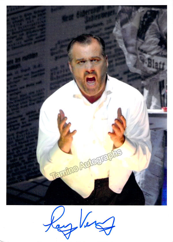 American tenor, signed photograph, shown as Don Juan in Erwin Schulhoff's opera Flammen at the Theatre an der Wien in Vienna in 2006. Size is 5 x 7 inches, in excellent condition.