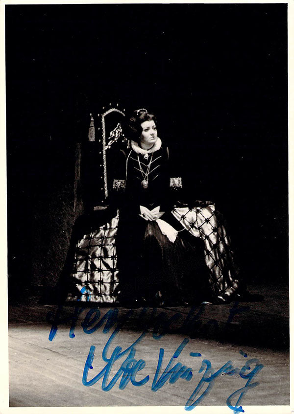 Signed photograph shown in the title role in Strauss' Elektra at the Deutsche Oper Berlin. Size 4 x 5.75 inches, in excellent condition.