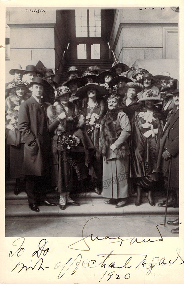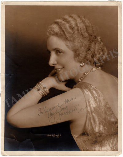 Gorgeous sepia photograph signed and inscribed by her with a short sentiment dated 1929, and original photo by Mishkin (New York). Size is 10.8 x 13.6 inches, some silvering, creases, in overall very good condition.