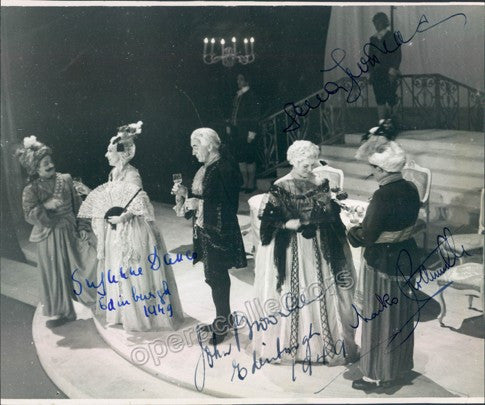 Stunning photograph of a performance of Mozart's Cosi Fan Tutte at the King´s Theatre in Edinburgh, Scottland, 1949, signed by 4 of the principal performers; stamped on verso by the magazine The Bulletin, Glasgow. Size is 7.5 x 6 inches, in very good condition. Rare!