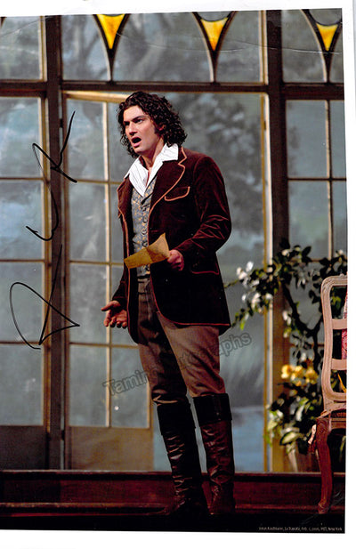 Signed photograph, shown in role (possibly Ferrando in Mozart's Cosi Fan Tutte). Size is 8 x 11.75 inches, several creases at the top of the photo, otherwise in excellent condition.