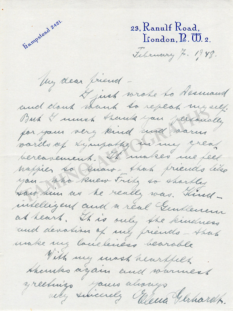 Gerhardt, Elena - Autograph Letter Signed 1948