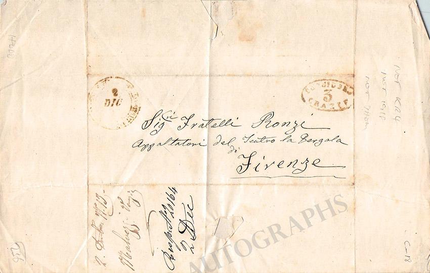 Autograph letter signed, dated in Venice in 1856. One page, in Italian, sold untranslated.