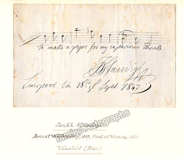 Staudigl, Joseph - Autograph Musical Quote Signed 1847