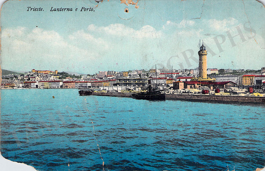 Beautiful postcard showing a seaside view of Trieste with signatures from each of these great artists. Signatures on verso. Size is 3.5 x 5.5 inches, small tear on bottom left and small crack near the middle of image, not affecting signatures, otherwise in very good condition.