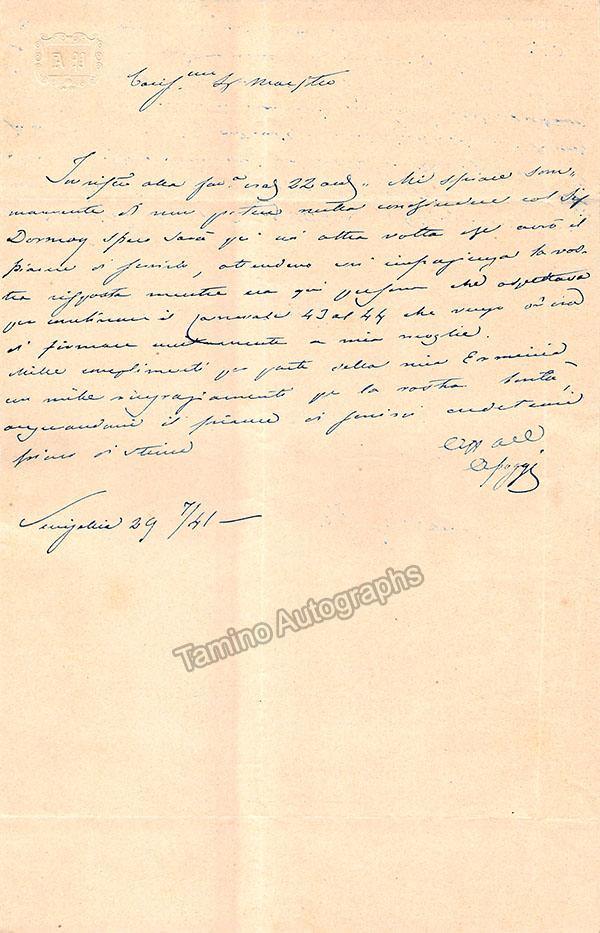 Poggi, Antonio - Autograph Letter Signed 1841