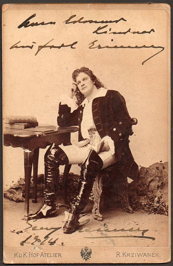 Fine cabinet photograph shown in role signed by him; a photo by Rudolf Krziwanek, Vienna.  Size is 4.25 x 6.5 inches, in very good condition.