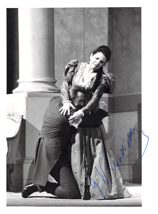 Signed photograph, shown as Tatiana in Tchaikovsky's Eugene Onegin. Stamped on verso by photographer Daniel Faumieres, Paris. Size is 7 x 9.5 inches, in excellent condition.