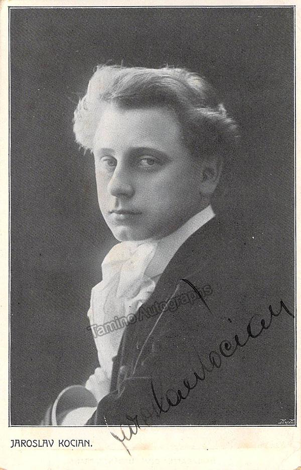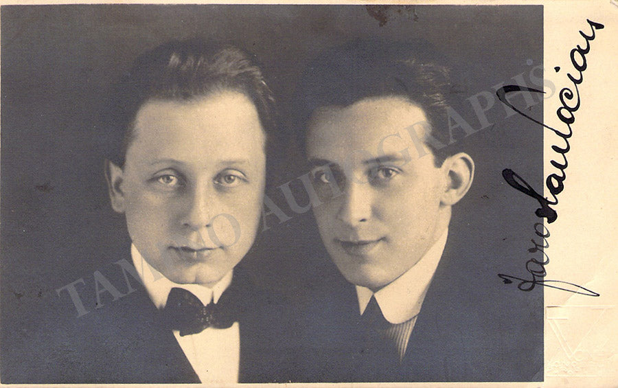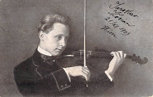 Black-and-white photo postcard signed by him in Vienna, 1903, shown in performing pose. Size is 5.3 x 3.3 inches, in excellent condition.