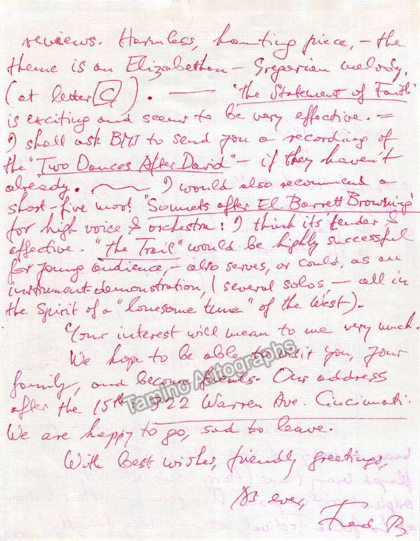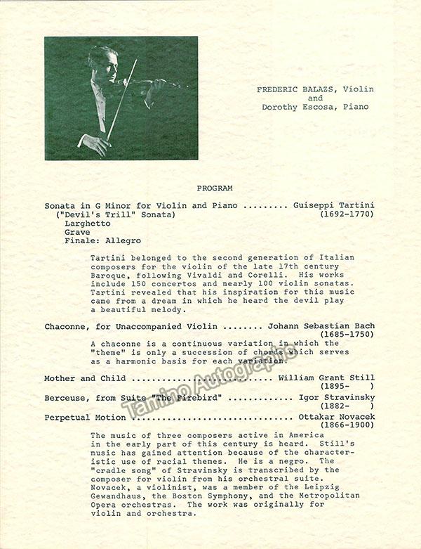 Balazs, Frederic - Autograph Letter Signed 1966