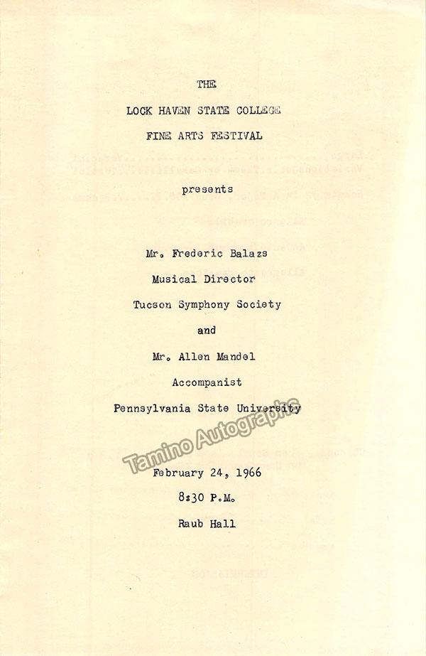 Frederic Balazs Autograph Letter Signed 1966