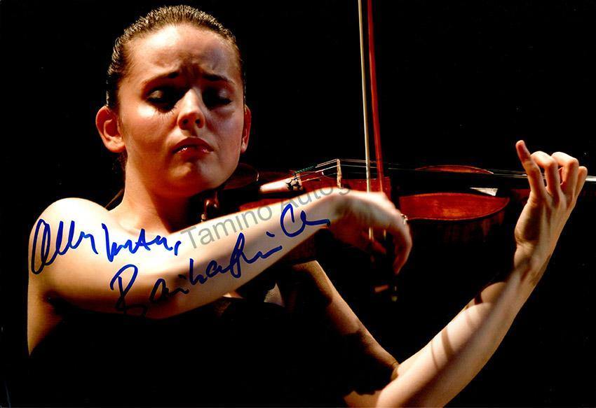 Latvian classical violinist (b.1981) and winner of the 2001 Queen Elisabeth Violin Contest.  Larger size color photograph signed by her, shown in performance.  Size is 12 x 8.25 inches, in excellent condition.