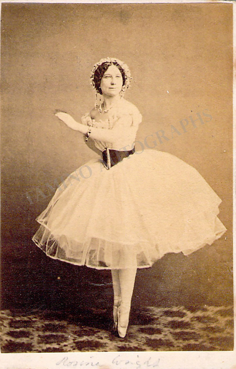 Beautiful collection of five (5) unsigned carte-de-visite (CDVs) of female ballet dancers including Augusta Fitzclarence, Lola Montez, Lydia Thompson (2), and Rosina Wright.