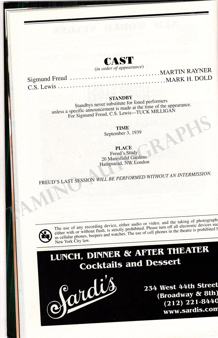 Rayner, Martin - Dold, Mark - Signed Playbill "Freud's Last Session" Rayner, Martin - Dold, Mark - Signed Playbill "Freud's Last Session"