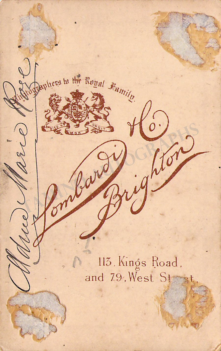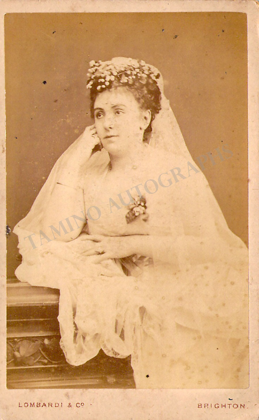 Unsigned CDV, shown in role, photo by Lombardi and Company, London. Size is 2.5 x 4 inches, pencil markings and some mounting traces on verso, otherwise in very good condition.