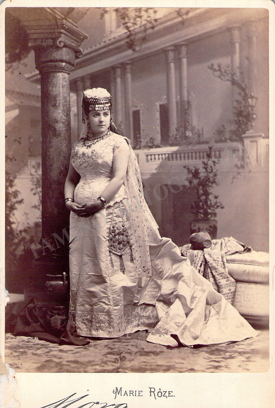 Nice vintage unsigned cabinet-style photograph by Mora, New York, shown probably as Aida in Verdi's opera. Size is 4.2 x 6.5 inches, in excellent condition.