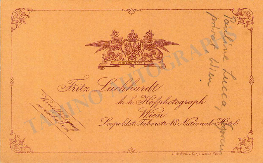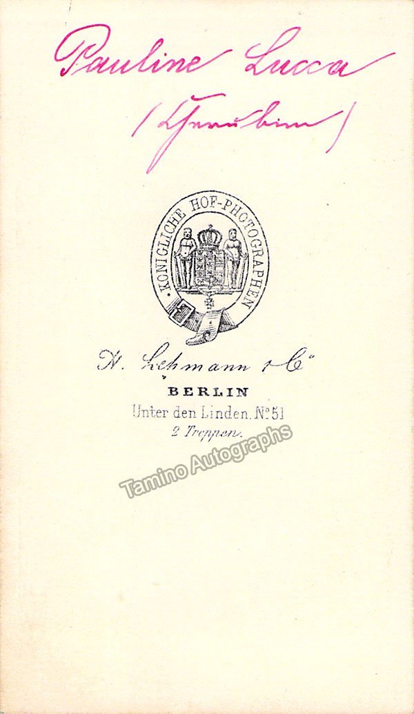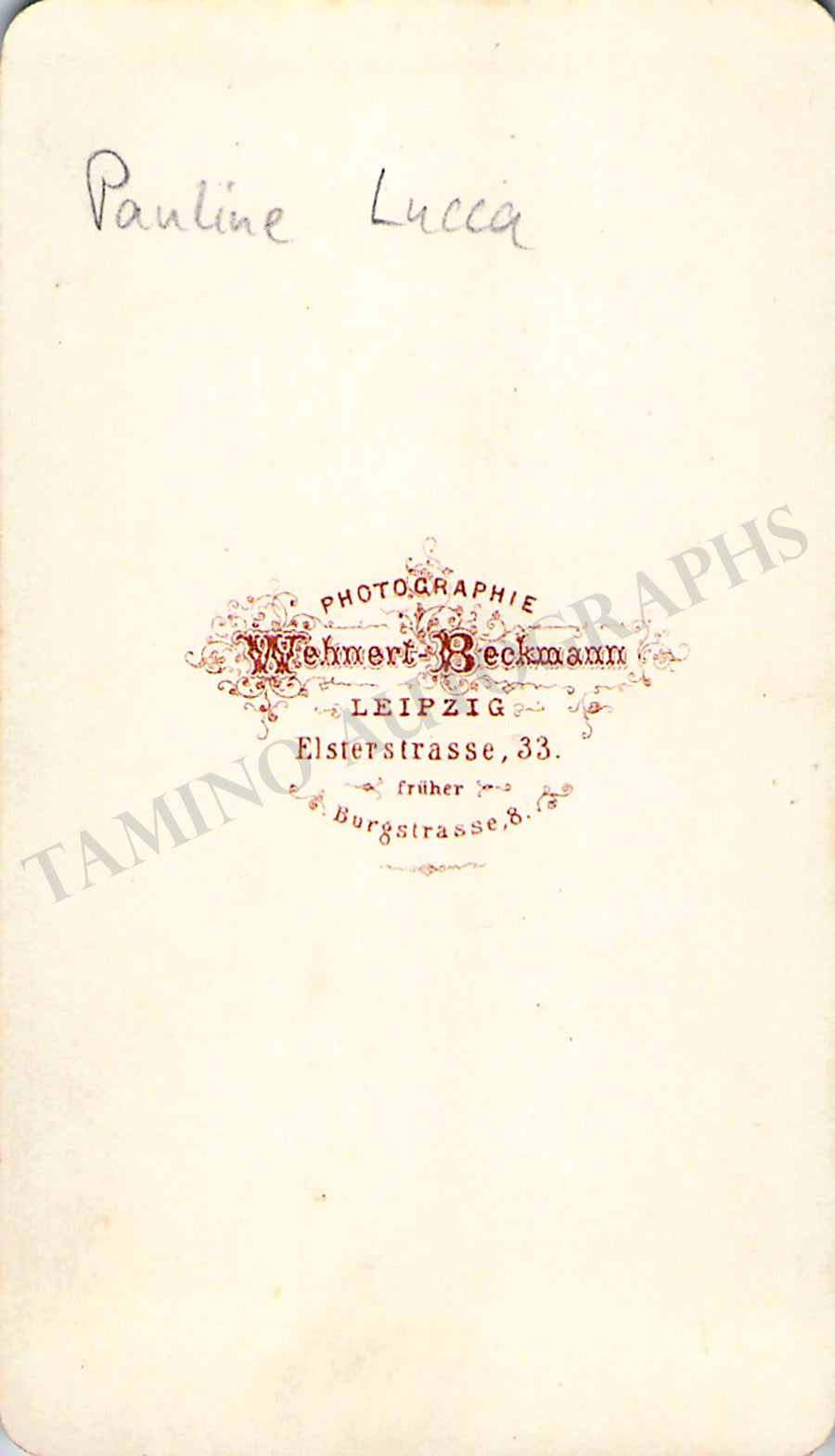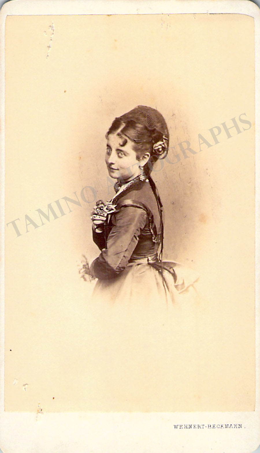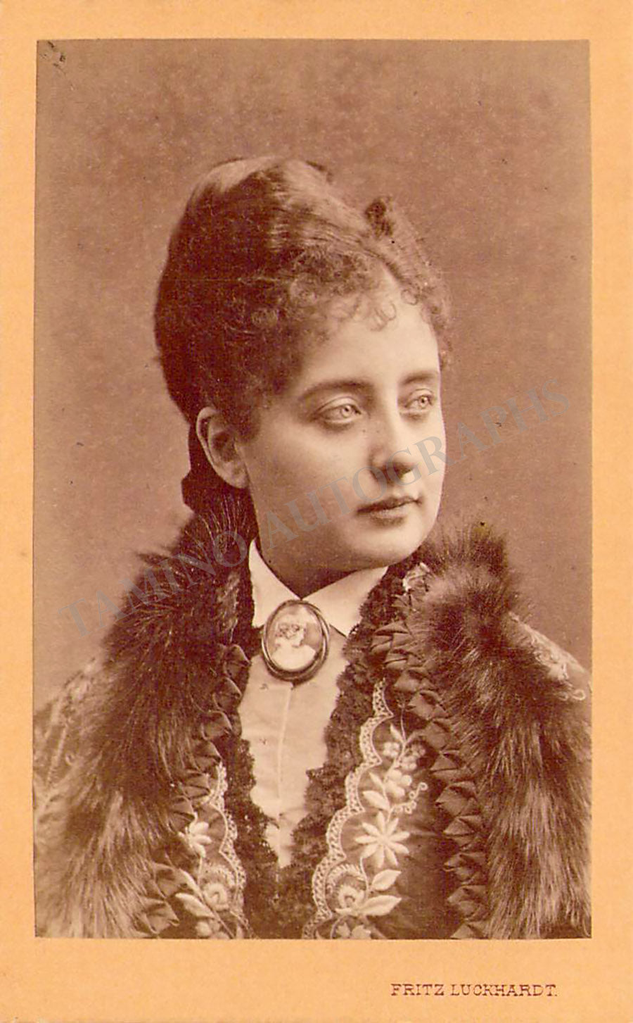 Unsigned Carte-de-Visite (CDV) of the star soprano by photographer Fritz Luckhardt, Vienna. Size is 2.6 x 4.1 inches, in excellent condition.