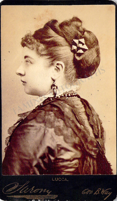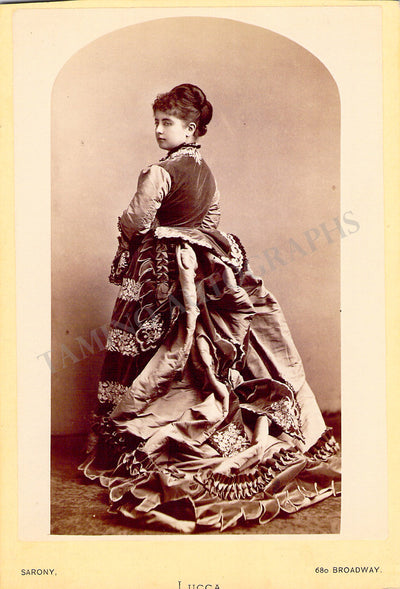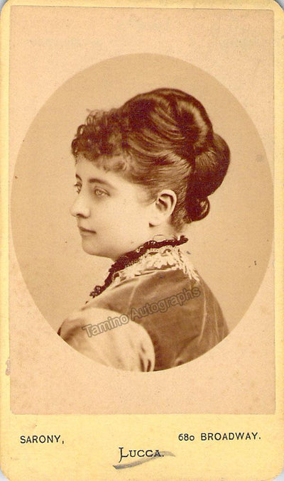 Unsigned Carte-de-Visite (CDV) of the star soprano by photographer Sarony, New York. Size is 2.5 x 4.1 inches, in excellent condition.