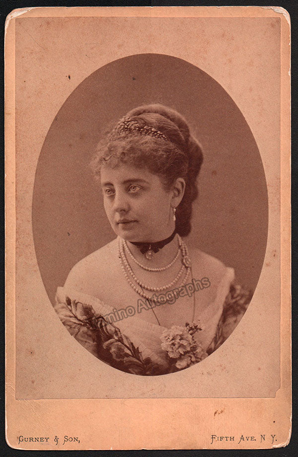 Unsigned cabinet-style photo, shown as herself, a photo by Gurney and Son, New York. Size is 4.25 x 6.5 inches, in excellent condition.
