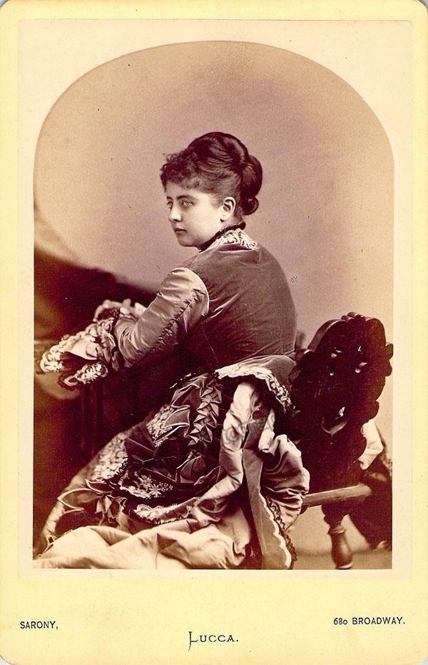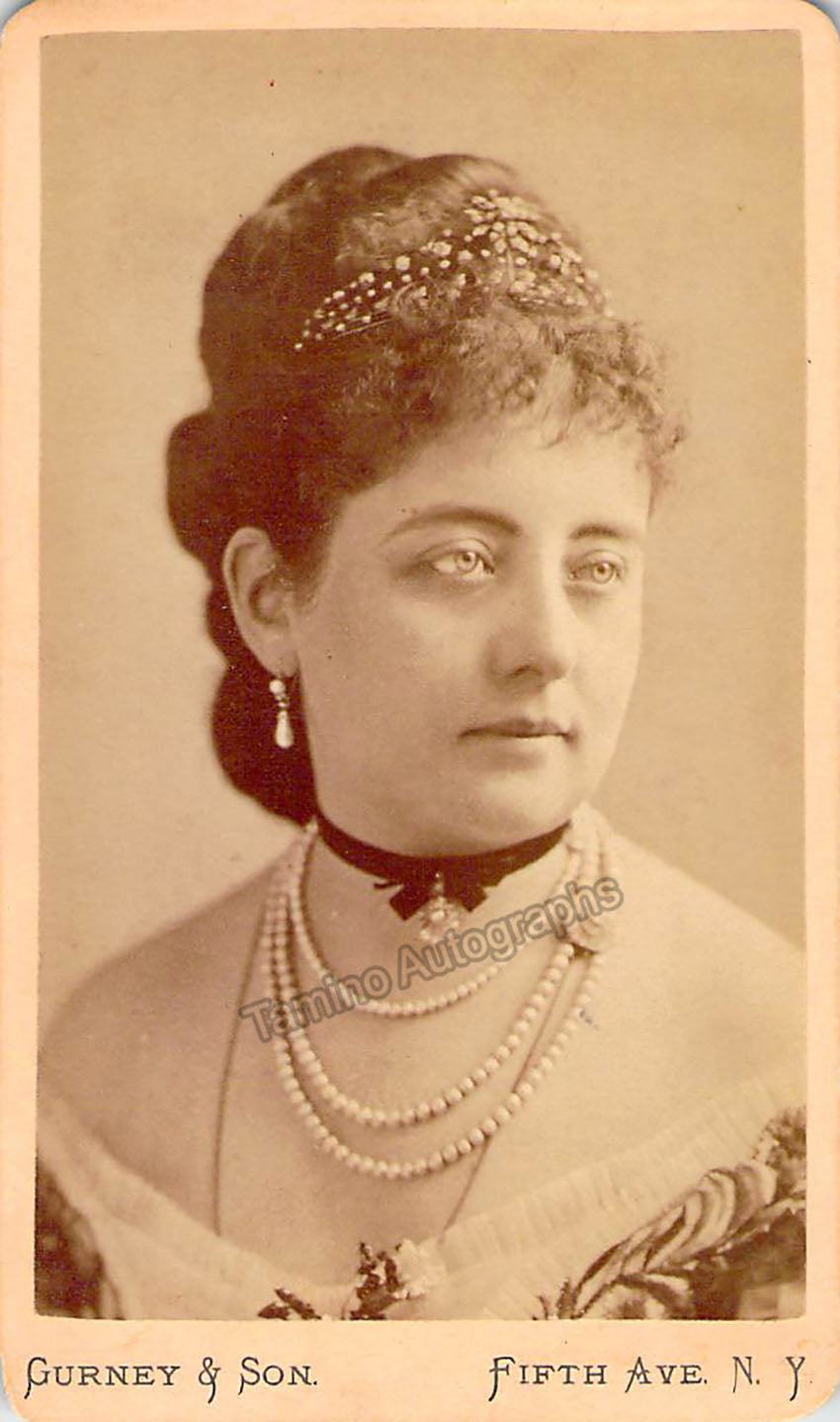 Unsigned Carte-de-Visite (CDV) of the star soprano by photographer Rockwood, New York. Size is 2.5 x 4 inches, small cuts at top left and right edges not affecting the image, otherwise in excellent condition.
