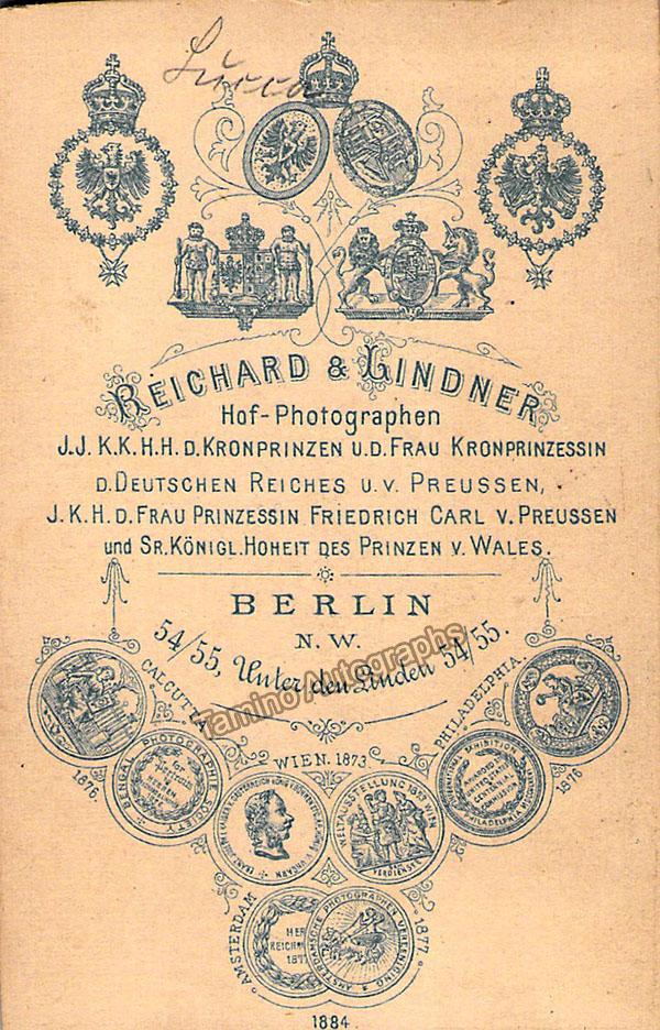 Unsigned CDV, shown as herself. Photo by Reichard and Lindner, Berlin. Size is 2.5 x 3.75 inches, in excellent condition.