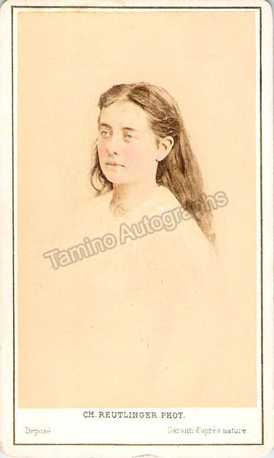 Unsigned carte-de-visite (CDV), shown young as herself, colorized. A photo by Victor Angerer, Paris, size is 2.5 x 4.25 inches, in very good condition.