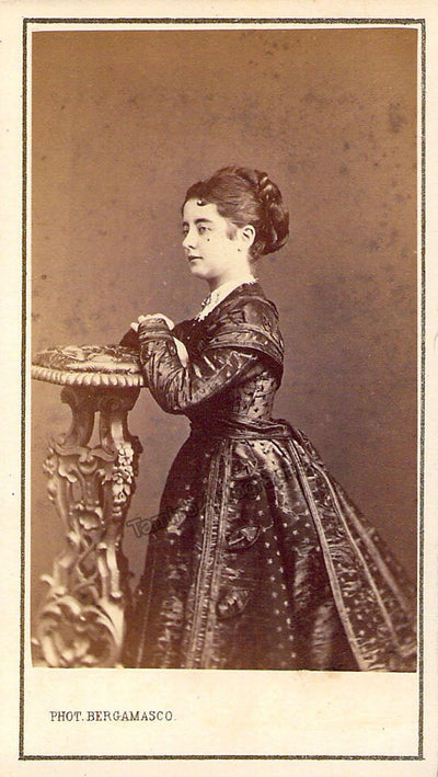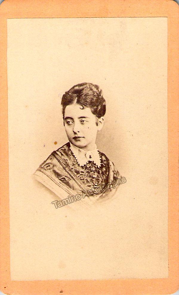 Unsigned carte-de-visite (CDV), shown as herself. A photo by L and V Angerer photographers, Vienna. Size is 2.5 x 4.25 inches, in very good condition.
