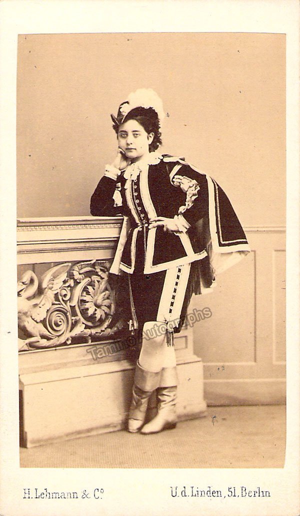 Unsigned CDV, shown in role. Photo by H. Lehmann and Company, Berlin. Size is 2.4 x 4.1 inches, in excellent condition.