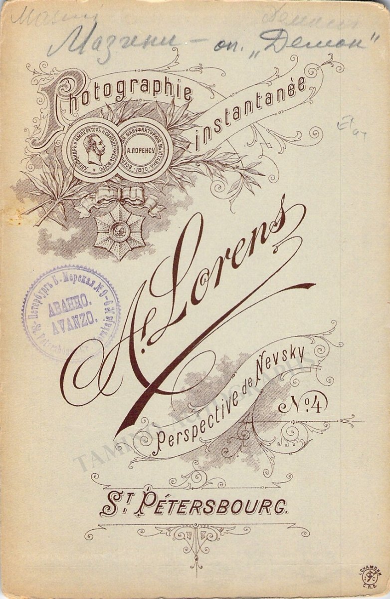Italian tenor (1844-1926), unsigned cabinet photo, shown in The Demon (opera by Anton Rubinstein), a photo by A. Lorens, St. Petersburg, Russia. Size is 4.25 x 6.5 inches, in excellent condition.