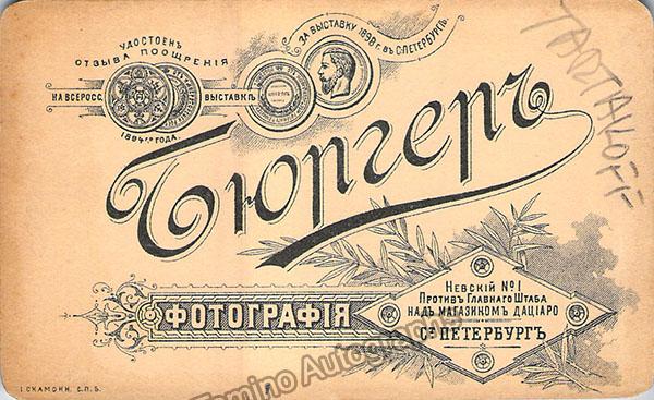 Unsigned mini-cabinet photo, shown in role. Photo by Borel, St. Petersburg. Size is 2.4 x 4 inches, in excellent condition.