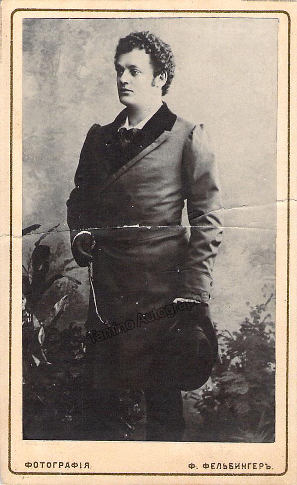 Unsigned CDV, shown in role (possibly Tchaikovsky's Eugene Onegin). Size is 2.5 x 4 inches, in excellent condition.