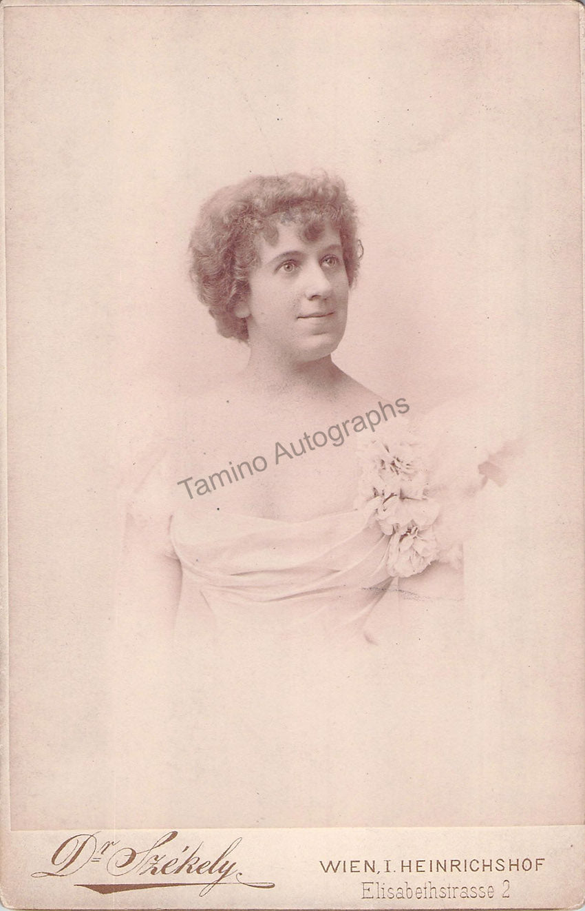 Beautiful cabinet photograph of the mezzo by Szekely, Vienna. Size is 4.2 x 6.5 inches, in very good condition.