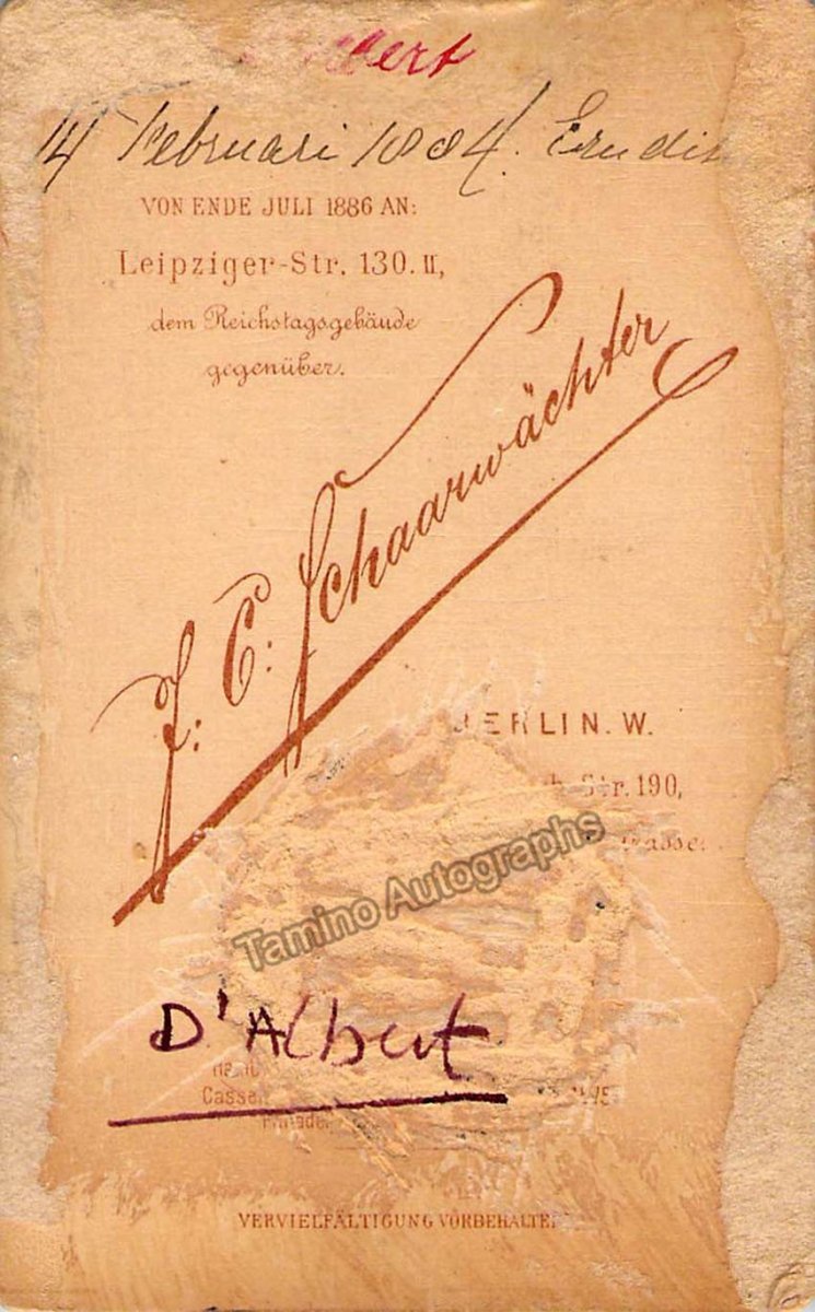 Scottish-born German composer and pianist (1864-1932), unsigned CDV by J.C. Schaarwachter, Berlin, blind stamped with the year 1884 (when the composer was only 20 years old) by photographer on the lower right corner. Size is 2.6 x 4.25 inches, some wear on verso, otherwise in very good condition.