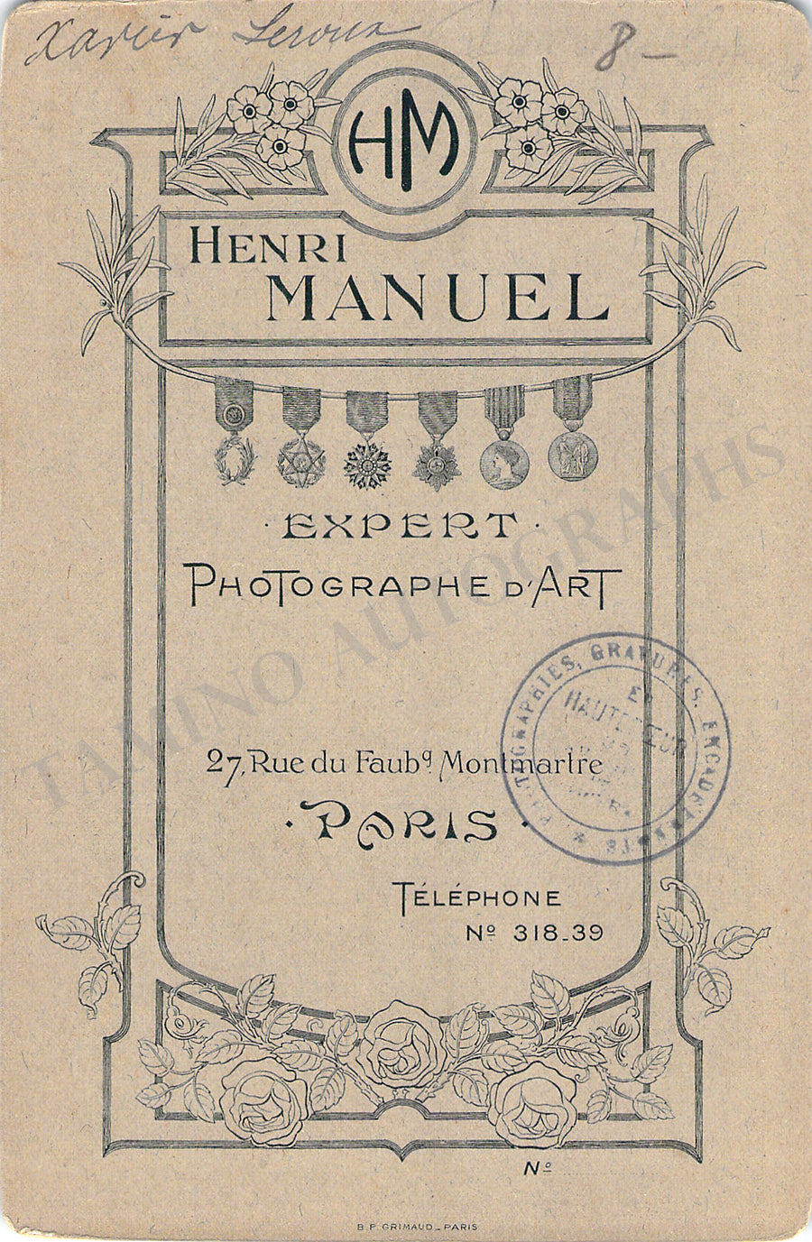 Fine vintage cabinet photo of the composer by photographer Henri Manuel (Paris). Size is 4.2 x 6.4 inches, in excellent condition.