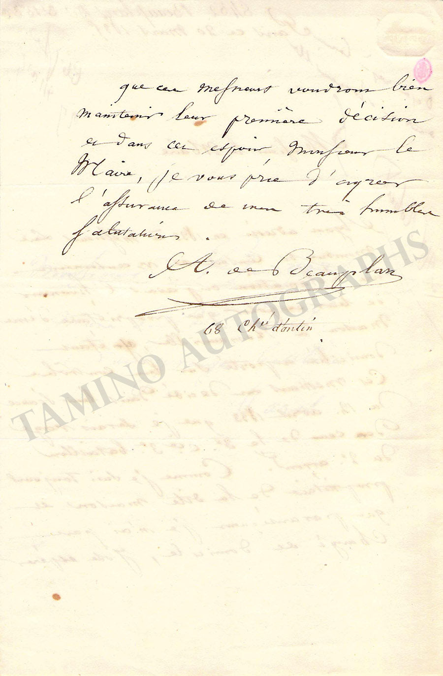 De Beauplan, Amedee - Set of 2 Autograph Letter Signed De Beauplan, Amedee - Set of 2 Autograph Letter Signed De Beauplan, Amedee - Set of 2 Autograph Letter Signed